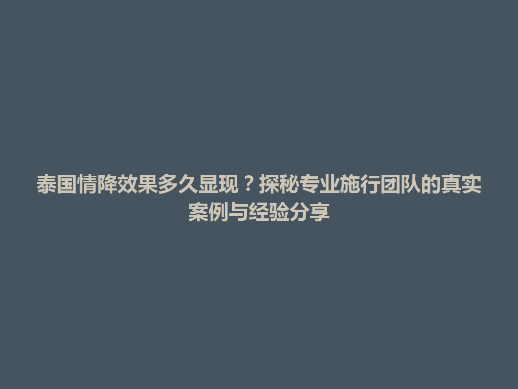 乌审旗泰国情降效果多久显现?探秘专业施行团队的真实案例与经验分享